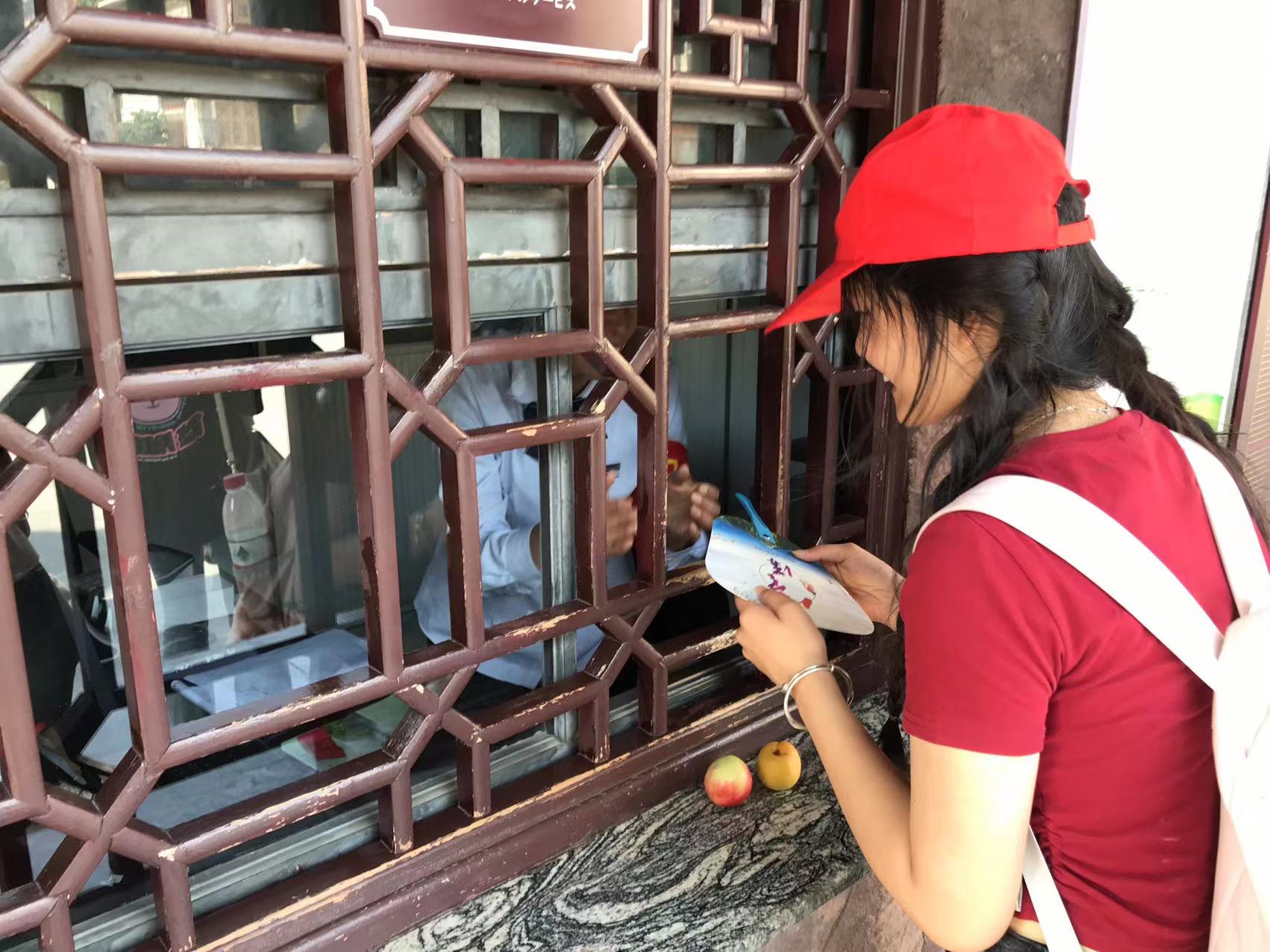 志愿者憑撿拾的垃圾向景區(qū)工作人員換領(lǐng)獎票